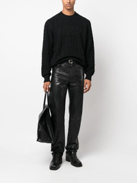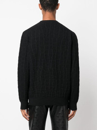 crocodile-pattern cable-knit jumper This Versace’s cable-knit jumper is a punchy take on a wardrobe staple. Crafted from wool, it’s defined by the chenille crocodile jacquard pattern. Highlights - Black - Wool - Cable knit - Crocodile jacquard - Ribbed trim - Crew neck - Drop shoulder - Long sleeves - Straight hem Made in Italy Composition Wool 100% SIZE & FIT Model measurements Height 6 ft 2 in(1.87 m) Bust/Chest 38.18 in(97 cm) Hips 36.61 in(93 cm) Waist 29.13 in(74 cm) FittingInformation Designed for a relaxed fit, this piece allows for comfort and movement when worn The ribbed hem offers a close, comfortable fit Made with a midweight knit, this piece offers some stretch This piece fits true to size – take your usual size Washing instructions Dry Clean Only