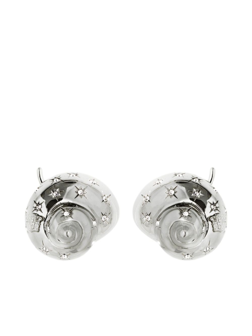 crystal-embellished earrings Highlights - Silver-tone - Lever fastening - Crystal embellishment - Curved corners Made in Italy