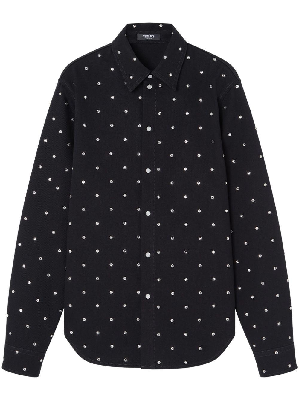 Cielo Stellato denim overshirt Highlights - Black - Crystal embellishment - Front press-stud fastening - Classic collar - Shirt sleeves - Curved hem Made in Italy Composition Cotton 100%
