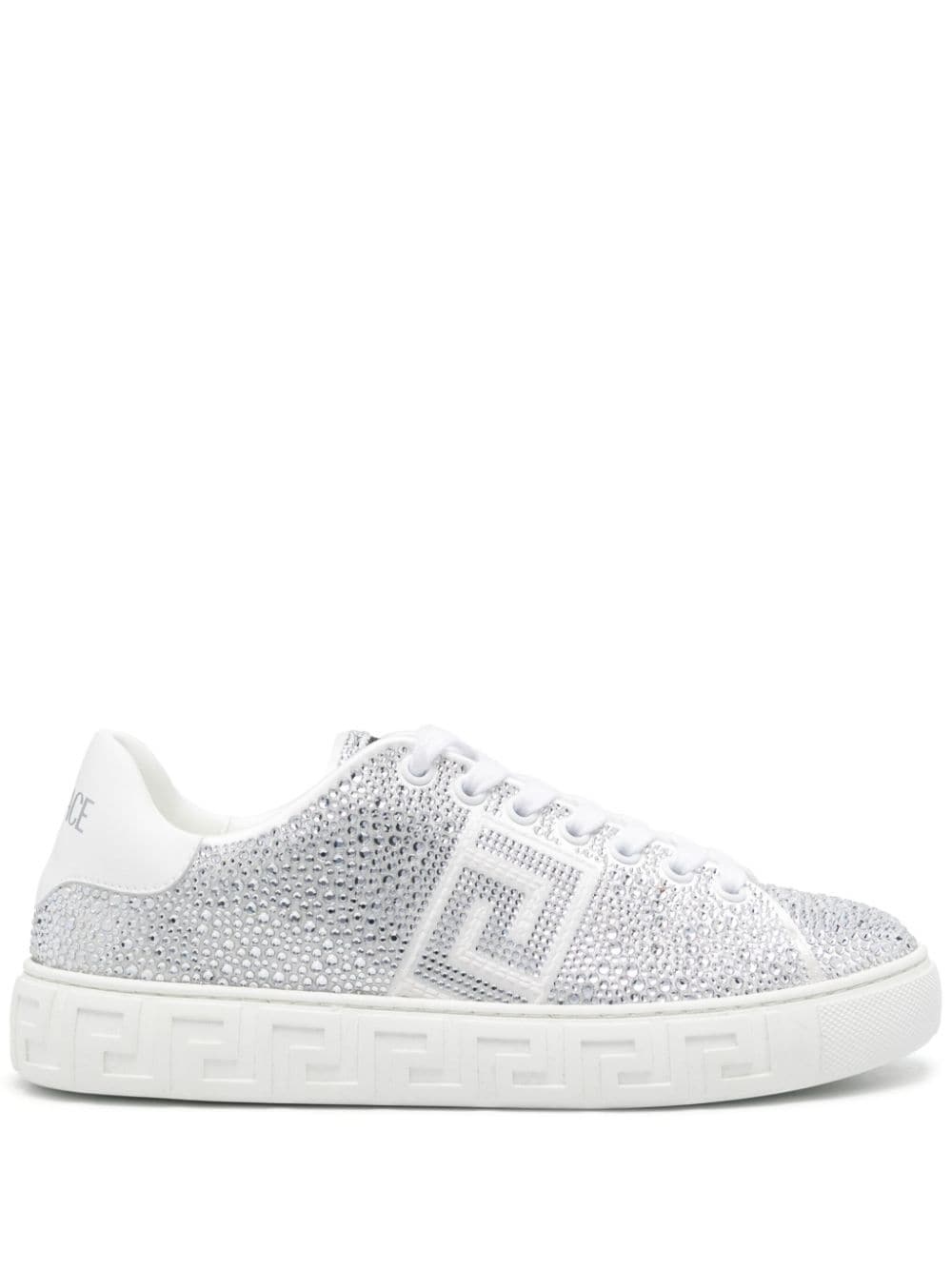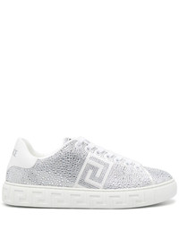 Crystal Greca sneakers Highlights - White/silver-tone - All-over crystal embellishment - Signature embossed greca detailing - Front lace-up fastening - Branded heel counter - Logo patch at the tongue - Round toe - Branded insole - Rubber sole Made in Italy Composition Lining: Polyurethane 100% Outer: glass 100%, Fabric 100% Sole: Rubber 100% SIZE & FIT Measurement HEEL 1.18 in(3 cm) Sole height 1.18 in(3 cm)