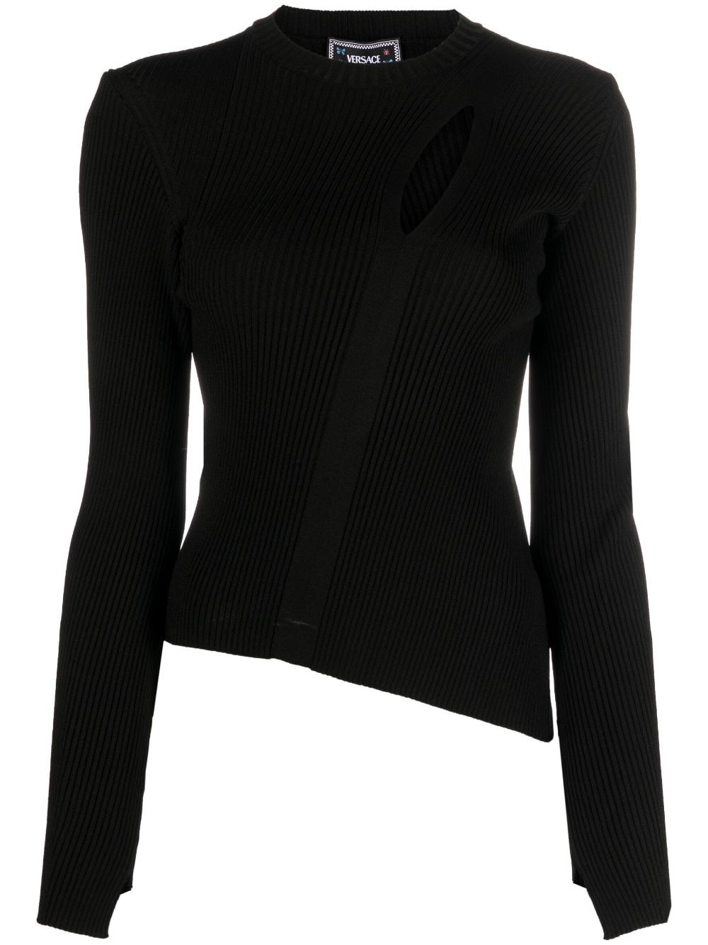 cut-out-detailing asymmetric jumper Highlights - Black - Ribbed knit - Cut-out detailing - Crew neck - Long sleeves - Asymmetric hem Made in Italy Composition Viscose 88%, Polyester 12% SIZE & FIT Model measurements Height 5 ft 10 in(1.77 m) Bust/Chest 32.28 in(82 cm) Hips 35.03 in(89 cm) Waist 25.19 in(64 cm) FittingInformation Designed for a slim fit that sits just away from the body offering a close yet comfortable fit Made with a midweight knit, this piece offers some stretch This piece fits true to size – take your usual size Washing instructions Dry Clean Only