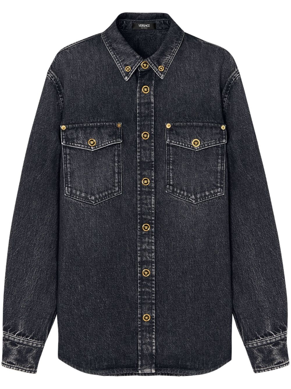 denim overshirt Highlights - Black - Cotton - Denim - Signature medusa head buttons - Front press-stud fastening - Button-down collar - Two button-fastening chest pockets - Long sleeves - Buttoned cuffs - Curved hem Imported Composition Cotton 100%
