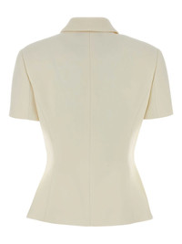 double-breasted blazer Highlights - White - Short sleeves - Double-breasted - Round collar - Button embellishment Made in Italy Composition Recycled Polyester 74%, Viscose 26% Washing instructions Read Manufacturer Guidelines