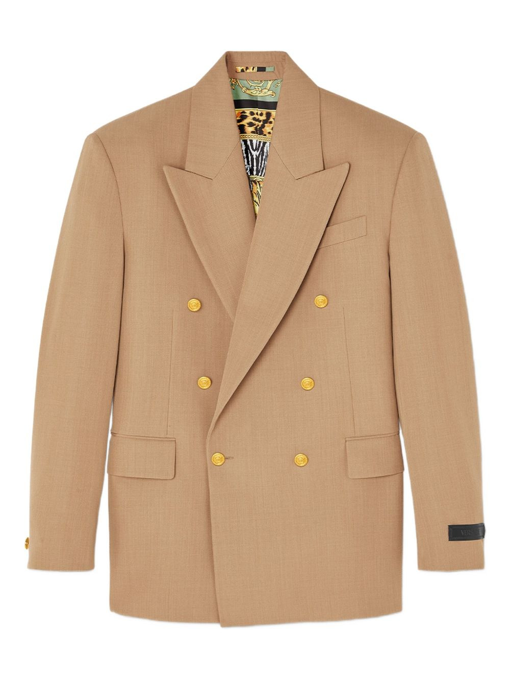 double-breasted gold-button blazer Highlights - Camel - Double-breasted - Button closure - Gold-tone buttons - Peak lapels Imported Composition Outer: Virgin Wool 100% Lining: Cupro 100%, Polyester 100%, Cotton 100%