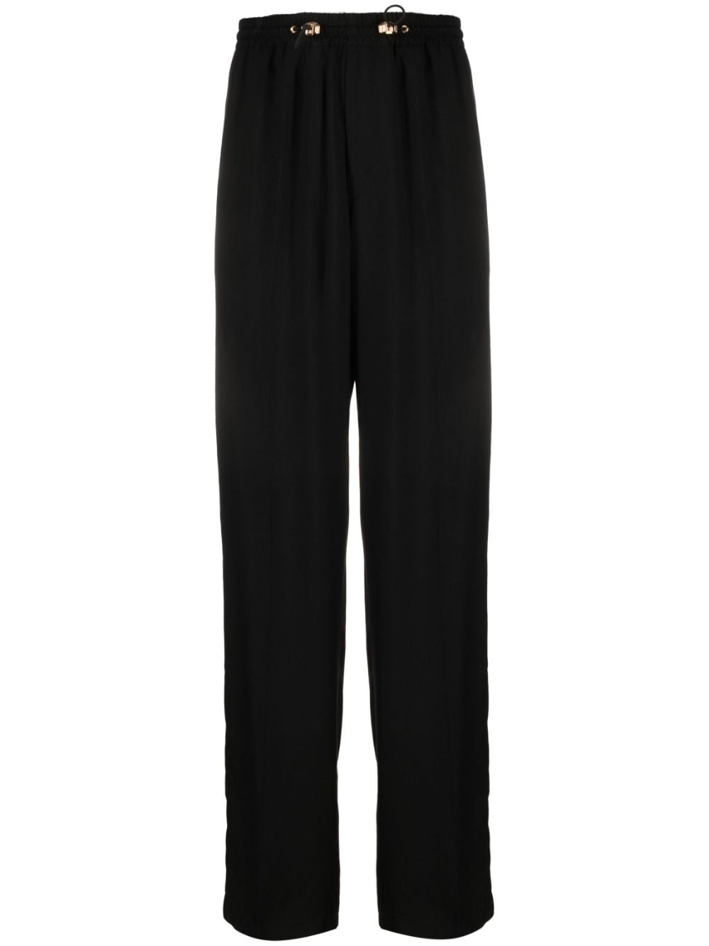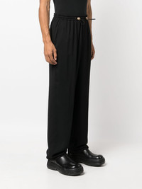 drawstring-fastening cotton track pants Versace's take on loungewear is showcased with these track pants. Spun from cotton, they're imagined in black and elevated by the gold-tone Medusa Head hardware at the drawstrings. Highlights - Black - Cotton - Medusa head motif - Gold-tone hardware - Drawstring fastening - Two side slash pockets - Two rear welt pockets Made in Italy Composition Outer: Viscose 100% Lining: Cotton 100% SIZE & FIT Model measurements Height 6 ft 2 in(1.87 m) Bust/Chest 38.18 in(97 cm) Hips 36.61 in(93 cm) Waist 29.13 in(74 cm) FittingInformation Designed for a straight-leg, allowing for an unrestricted and comfortable fit over the leg The elasticated waist allows for a comfortable fit Made from a midweight non-stretch fabric This piece fits true to size – take your usual size Washing instructions Dry Clean Only