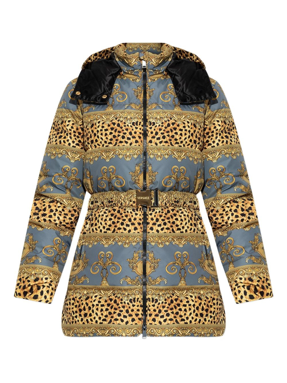 Duvet Stripes-print puffer jacket Highlights - Gold-tone - Duvet stripes print - Belted waist - Hooded neckline - Front zip fastening Made in Italy Composition Outer: Polyester 100% Lining: Duck Down 80%, Feather 20% Washing instructions Read Manufacturer Guidelines