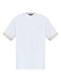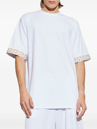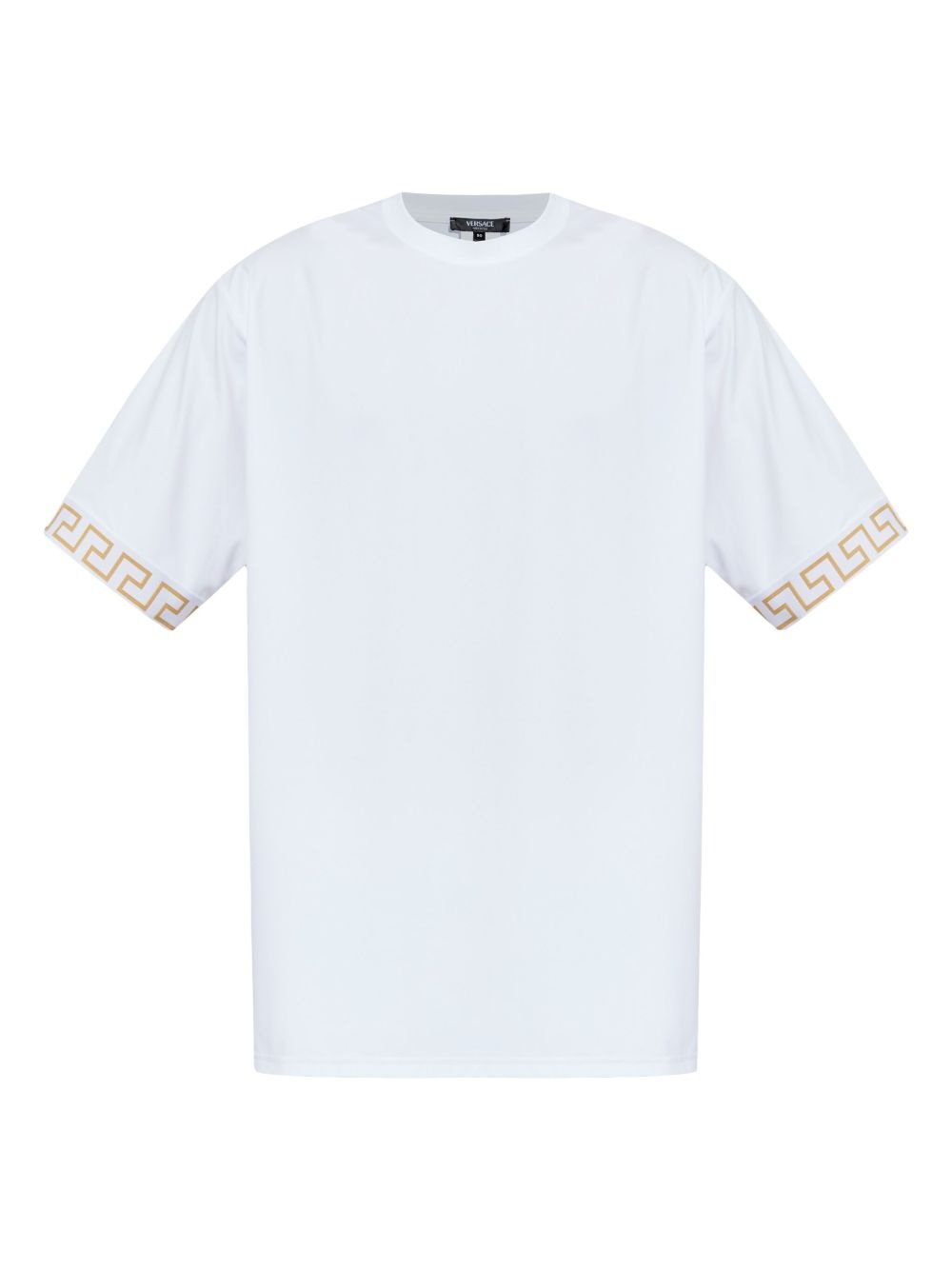 embellished-cuffs T-shirt Highlights - White - Short sleeves - Gold-tone greca detailing - Relaxed fit - Crew neckline - Soft drape Made in Italy Composition Polyamide 78%, Spandex/Elastane 22% SIZE & FIT FittingInformation Designed for an oversized fit, offering additional room throughout Made from a midweight stretch fabric, this piece offers elasticity and flexibility when worn Washing instructions Read Manufacturer Guidelines