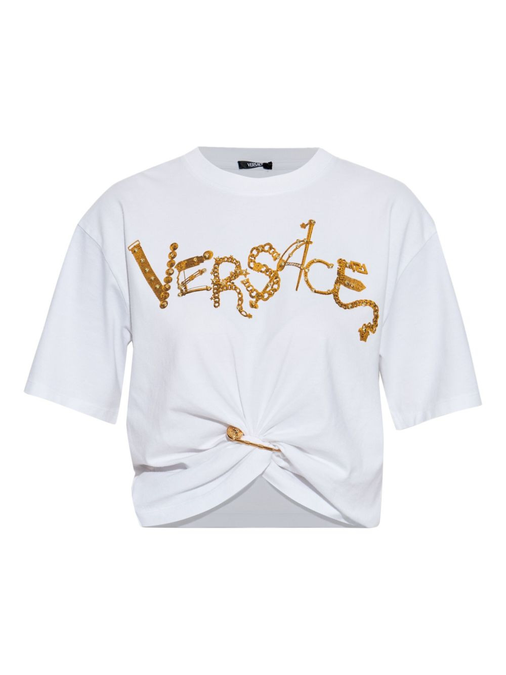 embellished knot-detail T-shirt Highlights - White - Gold-tone embellishments - Knot detail - Short sleeves - Round neck - Cotton Imported Composition Cotton 100% Washing instructions Read Manufacturer Guidelines