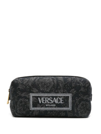 embroidered-logo jacquard toiletry bag Highlights - Black/grey - Full jacquard - Embroidered logo to the front - Rectangle shape - Gold-tone hardware - Branded zip puller - Tonal stitching - Zip fastening - Main compartment - Internal logo patch - No lining Made in Italy Composition Outer: Polyamide 53%, Cotton 38%, Polyester 6%, Acrylic 3% SIZE & FIT Measurement DEPTH 3.93 in(10 cm) HEIGHT 4.72 in(12 cm) WIDTH 8.66 in(22 cm)