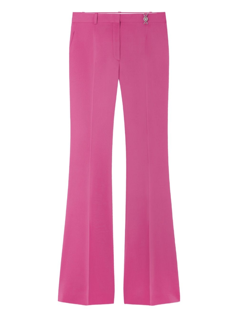 flared tailored trousers Highlights - Fuchsia pink - Concealed front button, hook and zip fastening - Belt loops - Two side inset pockets - Two rear button-fastening pockets Made in Italy Composition Lining: Cupro 58%, Viscose 42% Outer: RWS Wool 98%, Elastane 2%