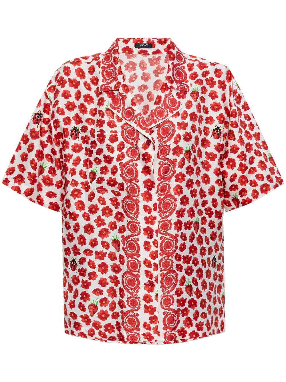 Strawberry Garden silk shirt Highlights - White - Concealed front button fastening - Chest patch pocket - Cuban collar - Short sleeves Made in Italy Composition Silk 100%