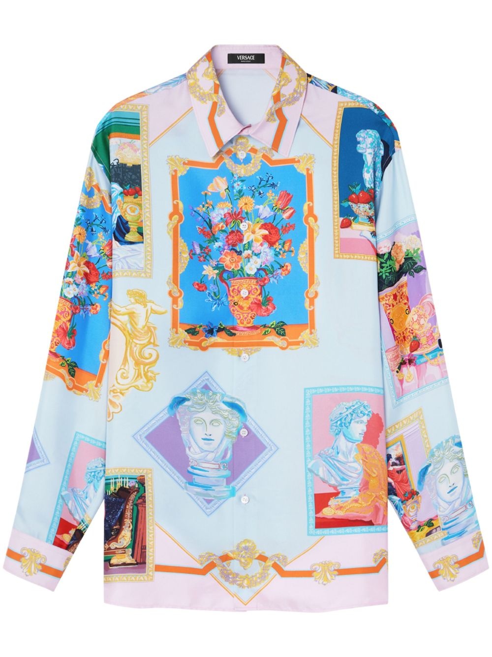 Gallery shirt Highlights - Light blue - Front button fastening - All-over graphic print - Buttoned cuffs - Drop shoulder Made in Italy Composition Silk 100% Washing instructions Read Manufacturer Guidelines