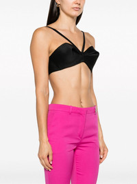 gathered bustier crop top Versace demonstrates its sleek aesthetic with this cropped bustier top. It’s crafted from a black wool-silk blend and is characterised by gathered folds at the cups that create a structured look. Highlights - Black - Wool-silk blend - Folded design - Gathered detailing - Sweetheart neck - Rear hook and eye fastening - Thin shoulder straps - Open back - Cropped Made in Italy Composition Lining: Acetate 75%, Silk 25% Outer: Wool 77%, Silk 23% SIZE & FIT Model measurements Height 5 ft 11 in(1.8 m) Bust/Chest 33.07 in(84 cm) Hips 37.4 in(95 cm) Waist 25.19 in(64 cm) FittingInformation Designed for a close fit throughout Made from a midweight non-stretch fabric This piece fits true to size – take your usual size Washing instructions Dry Clean Only