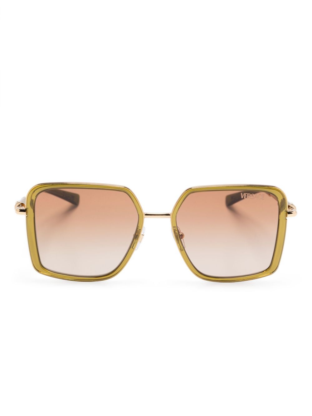 geometric-frame sunglasses Highlights - Olive green - Nose pads - Curved tips - These glasses come with a protective case. Made in Italy Composition Acetate 100%, Metal 100% SIZE & FIT Measurement Arm Length 5.51 in(14 cm) Bridge Width 0.7 in(1.8 cm) Lens Diameter 2.2 in(5.6 cm) Total Width 5.9 in(15 cm)