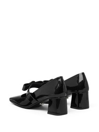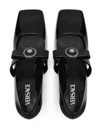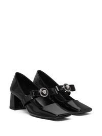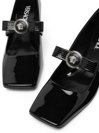 55mm Gianni Ribbon pumps Highlights - Black - Calf leather - Patent finish - Bow detailing - Medusa plaque detail - Slip-on style - Square toe - Branded insole - Mid block heel Made in Italy Composition Outer: Patent Calf Leather 100% Sole: Calf Leather 100% Lining: Calf Leather 100% SIZE & FIT Measurement HEEL 2.16 in(5.5 cm) Sole height 0.19 in(0.5 cm)
