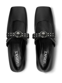 Gianni Ribbon studded ballerina shoes Highlights - Black - Leather - Smooth grain - Medusa plaque detail - Silver-tone stud embellishment - Bow detailing - Square toe - Slip-on style - Branded leather insole - Flat leather sole Made in Italy Composition Outer: Leather 100% Sole: Leather 100% Lining: Leather 100%