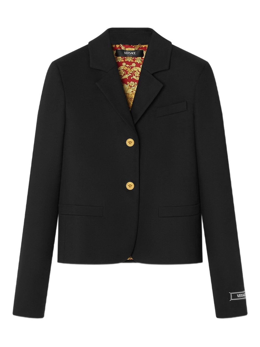 gold-button cotton jacket Highlights - Black - Gold buttons - Natural cotton - Notched lapel - Sleeve-cuff buttons - Internal baroque print Made in Italy Composition Outer: Cotton 100% Lining: Cupro 100%, Polyester 100% Washing instructions Read Manufacturer Guidelines
