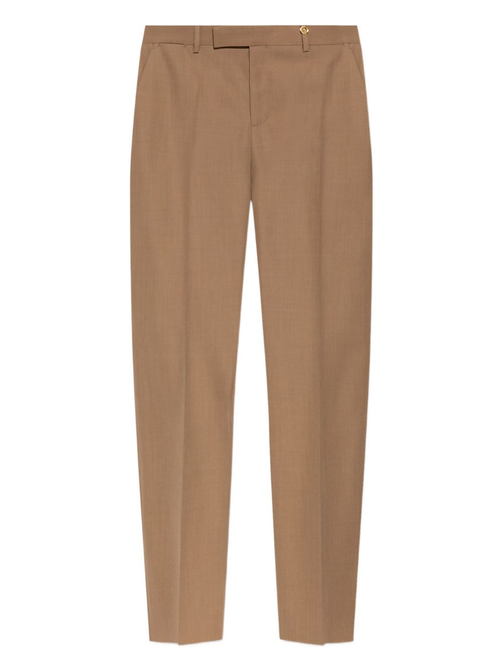 gold-button wool trousers Highlights - Light brown - Gold button - Mid-rise waist - Flat front - Wool fabric Made in Italy Composition Virgin Wool 100% Washing instructions Read Manufacturer Guidelines