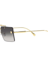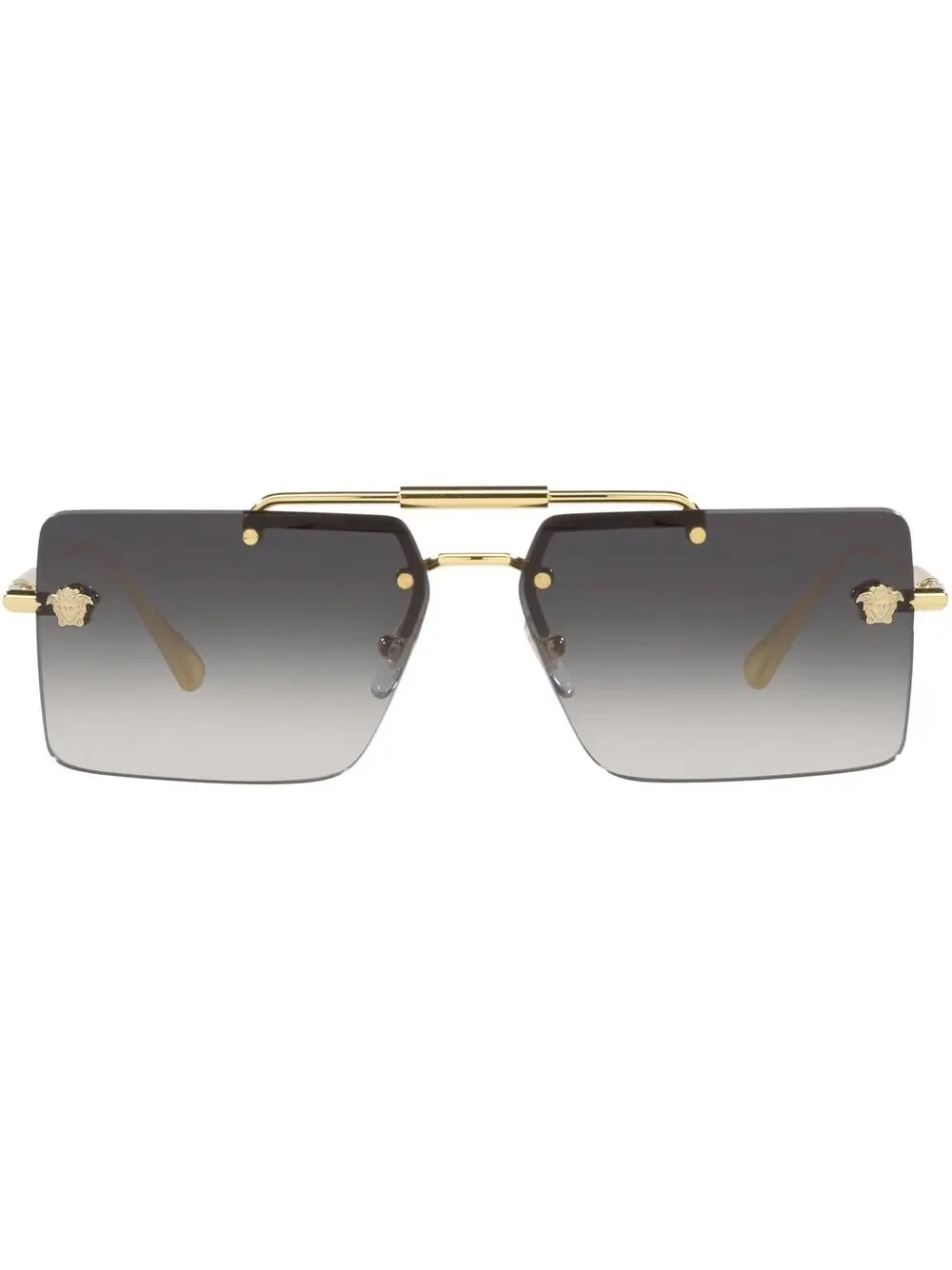 gradient-lens sunglasses gold-tone studded logo detail frameless design double gradient lenses metal brow bar straight arms curved tips These glasses come with a protective case. Made in United States Composition Metal 100% SIZE & FIT Measurement Arm Length 5.7 in(14.5 cm) Bridge Width 0.51 in(1.3 cm) Lens Diameter 2.36 in(6 cm)