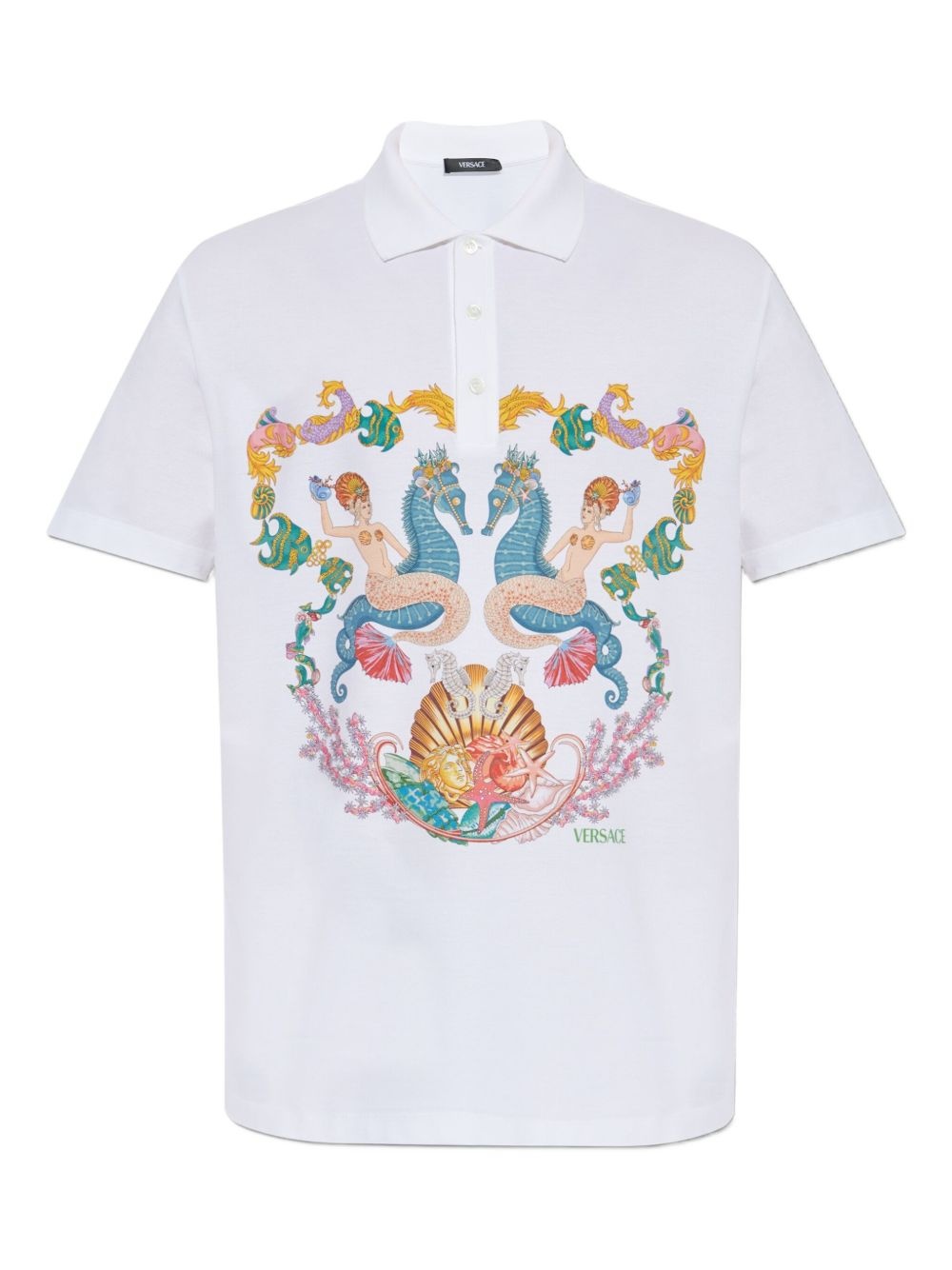 graphic-print polo shirt Highlights - White - Graphic print to the front - Vibrant floral accents - Logo detail at hem - Classic polo collar Imported Composition Cotton 100% Washing instructions Read Manufacturer Guidelines