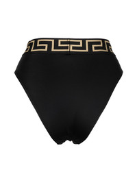 Greca Border high-waisted bikini bottoms Black stretch-polyamide high-waisted bikini bottoms from VERSACE. Highlights - Black - Stretch-design - High-waisted - Signature greca detailing - High cut - Be mindful to try on swimwear over your own garment Made in Italy Composition Polyamide 78%, Spandex/Elastane 22% Washing instructions Hand Wash