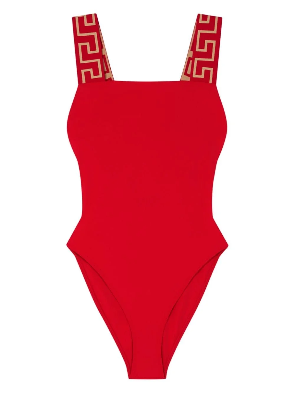 Greca Border one-piece swimsuit Highlights - Red - Stretch-design - Square neck - Scoop back - Signature greca detailing - Full lining - Be mindful to try on swimwear over your own garments. Made in Italy Composition Outer: ECONYL® 78%, Elastane 22% Lining: ECONYL® 78%, Elastane 22% Washing instructions Read Manufacturer Guidelines