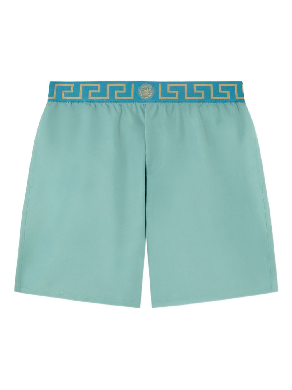 Greca Border swim shorts Highlights - Aqua green - Elasticated waistband - Lightweight construction - Medusa head motif - Be mindful to try on swimwear over your own garments. Imported Composition Lining: Recycled Polyester 93%, Elastane 7% Outer: Recycled Polyester 100% Washing instructions Read Manufacturer Guidelines
