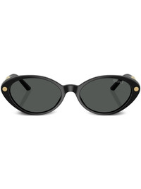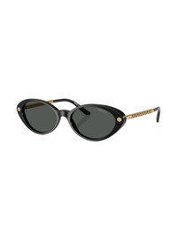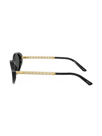 Greca-detail cat eye-frame sunglasses Highlights - Black - Gold-tone - Grey tinted lenses - Uv protection - Oval frame - Signature greca detailing - Straight arms - Curved tips - These glasses come with a protective case. Made in United States Composition Acetate 100% SIZE & FIT Measurement Arm Length 5.51 in(14 cm) Bridge Width 0.66 in(1.7 cm) Lens Diameter 2.12 in(5.4 cm)