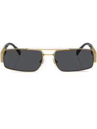 Greca-detail rectangle-frame sunglasses gold-tone metal grey tinted lenses rectangle frame double bridge nose pads signature Greca detailing cut-out detailing logo print at the arm straight arms curved tips These glasses come with a protective case. Made in Italy Composition Metal 100%