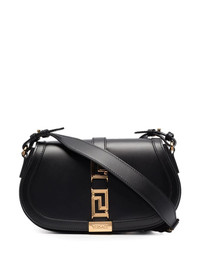 Greca Goddess shoulder bag jet black calf leather signature Greca detailing foldover top with magnetic fastening chain-link shoulder strap main compartment Made in Italy Composition Outer: Calf Leather 100% Lining: Calf Leather 100% SIZE & FIT Model measurements Height 5 ft 10 in(1.78 m) Bust/Chest 33.07 in(84 cm) Hips 36.61 in(93 cm) Waist 24.8 in(63 cm) Measurement DEPTH 2.75 in(7 cm) HEIGHT 5.9 in(15 cm) STRAP 22.04 in(56 cm) WIDTH 9.84 in(25 cm)