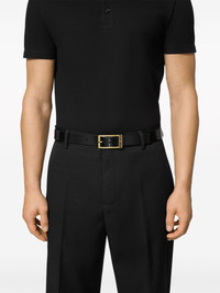 Greca leather belt Highlights - Black - Calf leather - Smooth grain - Signature greca detailing - Buckle fastening - Punched holes - Adjustable fit - Gold-tone hardware Made in Italy Composition Calf Leather 100%
