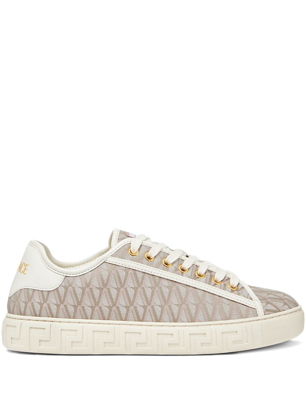 Greca-pattern sneakers Highlights - Beige - Greca pattern - Lace-up fastening - Flat sole - Round toe Imported Composition Outer: Polyester 61%, Cotton 39% Lining: Fabric 100% Sole: Rubber 100%
