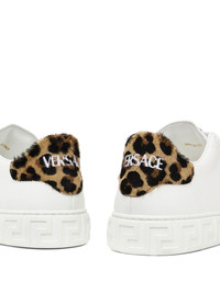 Greca pony-effect sneakers Highlights - White - Calf leather - Front lace-up fastening - Signature greca detailing - Leopard print - Contrasting branded heel counter - Logo patch at the tongue - Round toe - Flat rubber sole Made in Italy Composition Outer: Calf Leather 100%, Calf Hair 100%, Nylon 100% Lining: Polyester 100% Sole: Thermoplastic Polyurethane (TPU) 100%