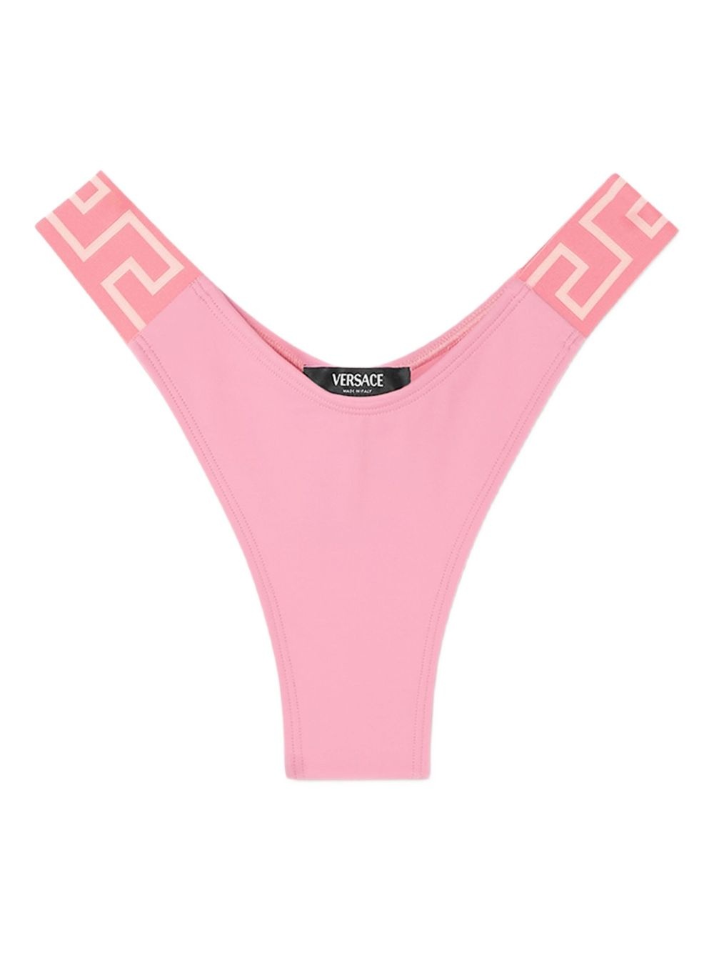 Greca-print bikini bottom Highlights - Pink - Greca detailing - Low-rise design - Thong back - Seamless finish - Be mindful to try on swimwear over your own garments. Made in Italy Composition Outer: Recycled Nylon 78%, Elastane 22% Lining: Recycled Nylon 78%, Elastane 22%
