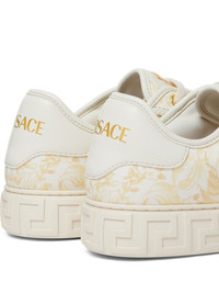 Greca printed sneakers Highlights - White and gold - Barocco print - Lace-up fastening Made in Italy Composition Outer: Cotton 100% Lining: Polyester 100% Sole: Thermoplastic Polyurethane (TPU) 100%