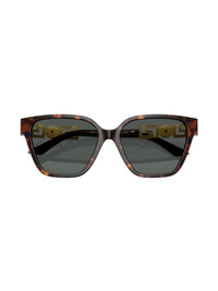 Greca strass butterfly-frame sunglasses Highlights - Havana brown - Tortoiseshell effect - Acetate - Butterfly frame - Signature greca detailing - Dark grey tinted lenses - Gold-tone logo plaque with crystal embellishment at the arm - Sculpted arms with curved tips - These glasses come with a protective case. Made in Italy Composition Acetate 100% SIZE & FIT Measurement Arm Length 5.51 in(14 cm) Bridge Width 0.62 in(1.6 cm) Lens Diameter 2.2 in(5.6 cm)