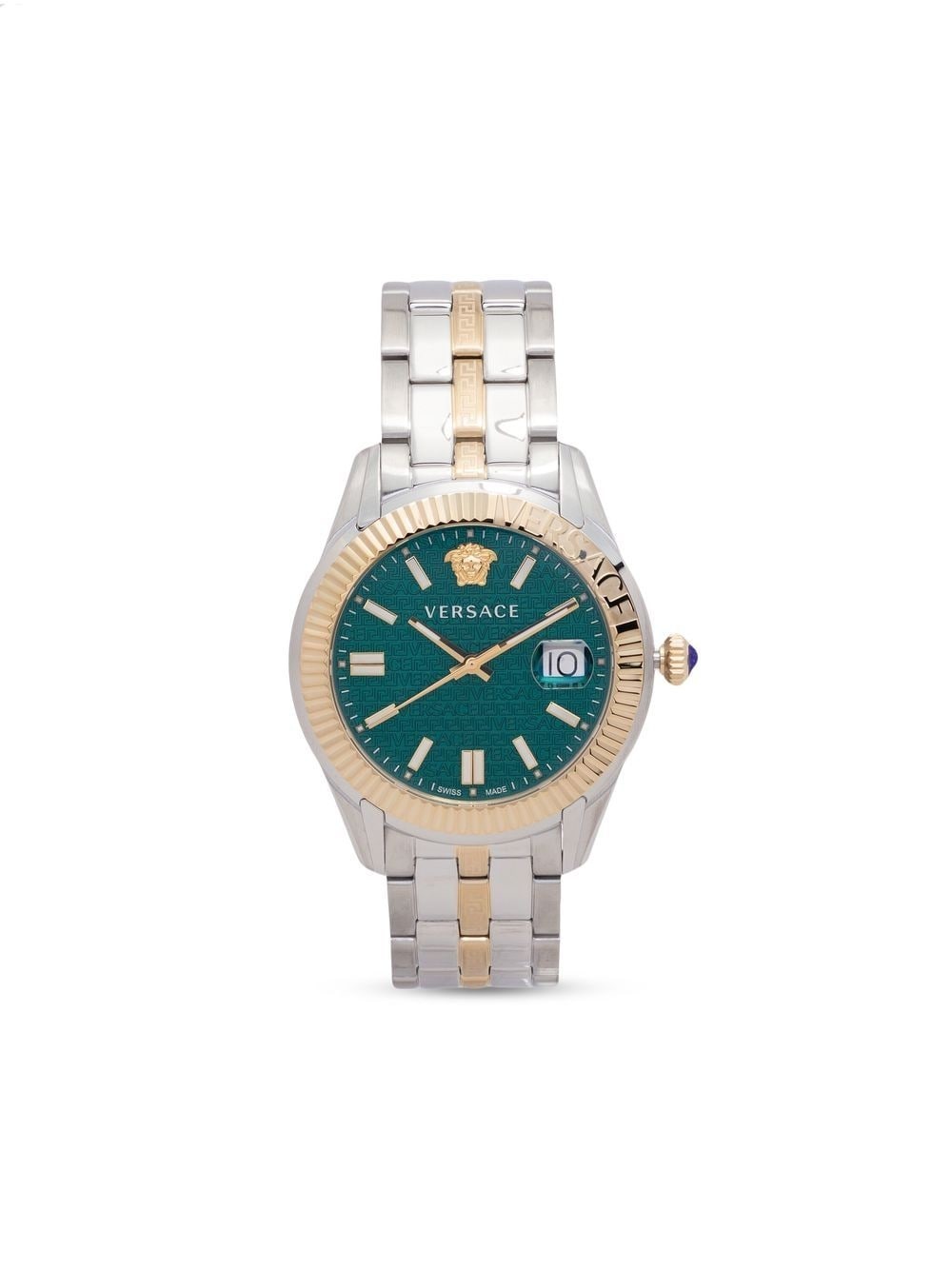 Greca Time 40mm Versace's undeniable connection to Greek mythology is also evidenced in its opulent timepieces. For example, this quartz-powered Greca Time 40mm is accented with the signature Medusa Head at 12 o'clock, making the model instantly recognisable of the Italian fashion house. Imported SIZE & FIT Model measurements Height 5 ft 11 in(1.8 m) Bust/Chest 31.88 in(81 cm) Hips 35.03 in(89 cm) Waist 24.01 in(61 cm) Measurement CIRCUMFERENCE 8.74 in(22.2 cm) DIAMETER 1.57 in(4 cm) Thickness 0.31 in(0.8 cm) WIDTH 1.25 in(3.2 cm)