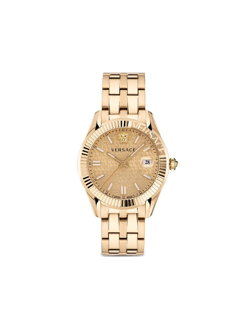 Greca Time 41mm Highlights - 41mm - Stainless steel case - Round face - Index dial - Baton hands - Logo-engraved bezel - Screw-down crown - Stainless steel link bracelet - Clasp fastening - Date indication - This item comes with a standard one-year warranty from the brand. Imported Composition stainless steel 100% SIZE & FIT Measurement DIAMETER 1.61 in(4.1 cm)