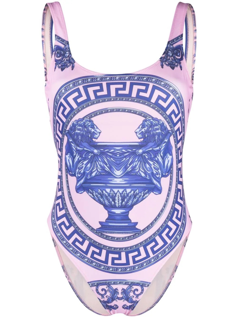 Greek Key-print swimsuit pink/blue Greek Key motif U-neck thin shoulder straps high-cut leg Be mindful to try on swimwear over your own garments. Made in Italy Composition Outer: Polyester 78%, Elastane 22% Lining: Polyamide 75%, Elastane 25% Washing instructions Hand Wash