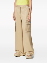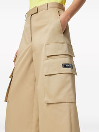 high-waist wide-leg trousers Highlights - Beige - Cotton - Applique logo - Concealed fly and button fastening - High-waisted - Wide leg - Belt loops - Two side inset pockets - Two rear jetted pockets - Multiple cargo pockets - Straight hem Made in Italy Composition Lining: Cupro 100% Outer: Cotton 100% Washing instructions Read Manufacturer Guidelines