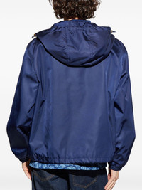 hooded zip-up bomber jacket Highlights - Navy blue - Zip front fastening - Drawstring hood - Logo-patch at the chest - Side zip-fastening pockets - Elasticated cuffs Made in Italy Composition Nylon 100%
