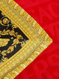 I Love Baroque beach towel Baroque details popped off in the late 80s when Gianni Versace started to use them on literally everything and nowadays the trend is still alive. Constructed from soft cotton, this beach towel comes with an iconic baroque print around it that will stand the test of time. Highlights - Red/black/gold - Cotton - Baroque-pattern print - Jacquard logo motif - Straight hem - Rectangle shape - 145x195cm Made in Italy Composition Cotton 100% SIZE & FIT Measurement LENGTH 57.08 in(145 cm) WIDTH 76.77 in(195 cm)