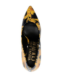80mm engraved-logo leather pumps Highlights - Black/multicolour - Calf leather - Baroque-pattern print - Engraved logo - Pointed toe - Slip-on style - Branded insole - 90mm stiletto heel Imported Composition Leather 100% SIZE & FIT Measurement HEEL 3.14 in(8 cm)