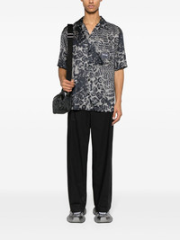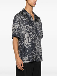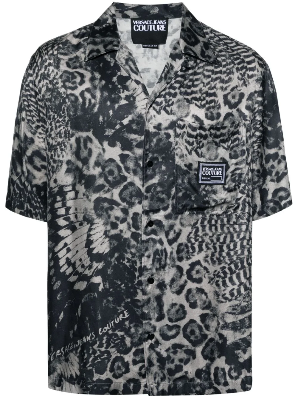 animal-print buttoned shirt Highlights - Black/grey - Animal print - Logo patch at the chest - Camp collar - Front button fastening - Drop shoulder - Short sleeves - Chest patch pocket - Straight hem - Authenticity qr code Made in Italy Composition Viscose 100% SIZE & FIT Model measurements Height 6 ft 2 in(1.87 m) Bust/Chest 38.18 in(97 cm) Hips 36.61 in(93 cm) Waist 29.13 in(74 cm) FittingInformation Designed for a regular fit, allowing for a comfortably loose fit throughout the body Made from a midweight non-stretch fabric This piece fits true to size – take your usual size Washing instructions Dry Clean Only