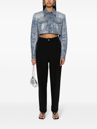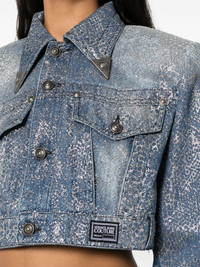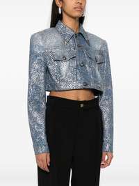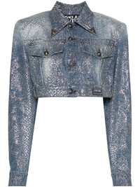 Animalier cropped denim jacket Highlights - Light blue - Cotton - Denim - Lurex detailing - Animalier motif - Pointed flat collar with western style collar tips - Shoulder pads - Long sleeves with buttoned cuffs - Two button-fastening chest pockets - Piece number logo patch at the front - Belt loops - Straight hem - Front button fastening with v-emblem embossed buttons Made in Italy Composition Lining: Polyester 65%, Cotton 35% Outer: Cotton 100% SIZE & FIT Model measurements Height 5 ft 9 in(1.76 m) Bust/Chest 31.88 in(81 cm) Hips 35.43 in(90 cm) Waist 22.44 in(57 cm) FittingInformation Designed to be unstructured, offering a loose fit throughout The internal shoulder pads offer a structured shape Sturdy and hard-wearing, this denim piece offers no stretch This piece fits true to size – take your usual size Washing instructions Machine Wash