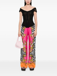 Barocco-outline trousers Highlights - Magenta - Elasticated waistband - Two diagonal pockets to the sides Imported Composition Lining: Polyester 100% Outer: Viscose 100% SIZE & FIT Model measurements Height 5 ft 10 in(1.78 m) Bust/Chest 33.46 in(85 cm) Hips 36.22 in(92 cm) Waist 23.22 in(59 cm) FittingInformation Designed with a wide-leg cut, these trousers allow for a close fit at the waist and offer a loose and roomy fit over the leg The elasticated waist allows for a comfortable fit Made from a lightweight non-stretch fabric Washing instructions Hand Wash