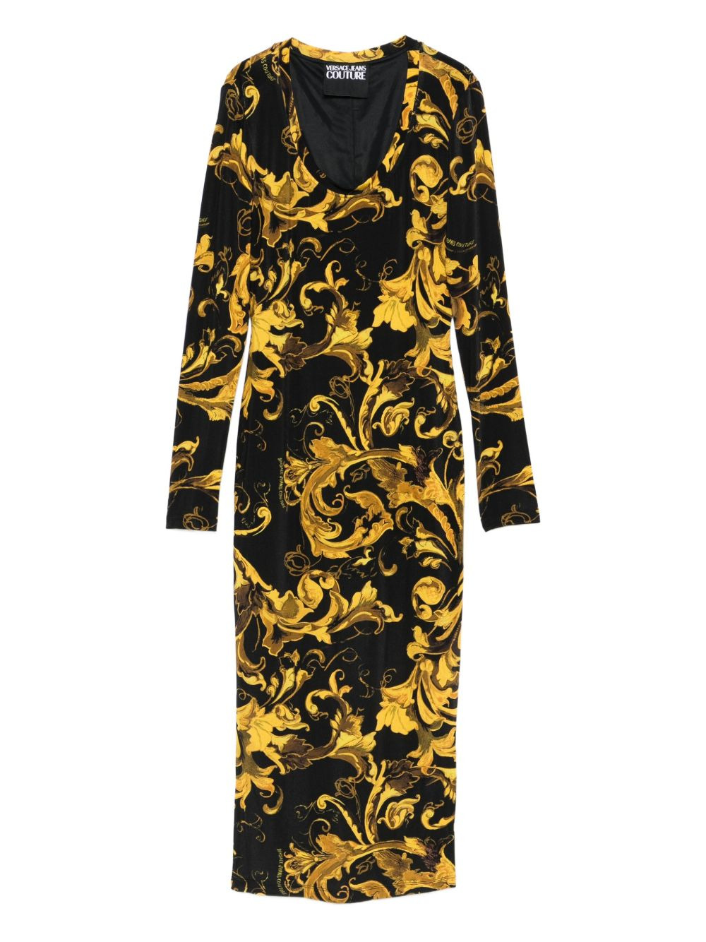 Barocco-print midi dress Highlights - Black - Long sleeves - Round neck - Midi length Imported Composition Outer: Viscose 96%, Elastane 4% Lining: Polyester 100% SIZE & FIT Model measurements Height 5 ft 10 in(1.78 m) Bust/Chest 33.46 in(85 cm) Hips 36.22 in(92 cm) Waist 23.22 in(59 cm) Washing instructions Hand Wash