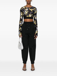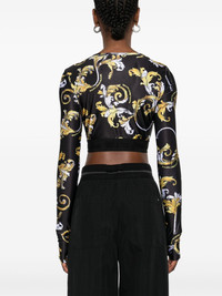 Barocco-print top Highlights - Black - Crew neck - Long sleeves - Elasticated logo waistband - All-over logo print Imported Composition Polyamide 80%, Elastane 20% SIZE & FIT Model measurements Height 5 ft 10 in(1.77 m) Bust/Chest 29.92 in(76 cm) Hips 34.25 in(87 cm) Waist 23.62 in(60 cm) FittingInformation Designed for a close fit throughout The elasticated waist allows for a comfortable fit Made from a midweight stretch fabric, this piece offers elasticity and flexibility when worn
