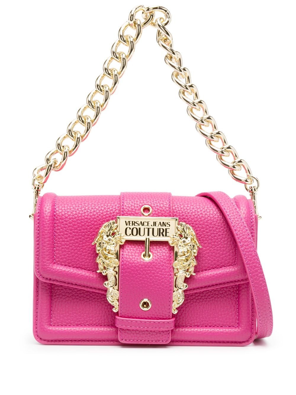 baroque-buckle shoulder bag Highlights - Baroque-buckle shoulder bag from versace jeans couture featuring fuchsia pink, faux leather, grained texture, gold-tone hardware, baroque pearl, internal logo plaque, foldover top with magnetic fastening, chain-link shoulder strap, adjustable detachable shoulder strap and main compartment. Imported Composition Outer: Polyester 100%, Polyurethane Resin 100% Lining: Polyester 100% SIZE & FIT Model measurements Height 5 ft 10 in(1.79 m) Bust/Chest 31.49 in(80 cm) Hips 35.03 in(89 cm) Waist 23.62 in(60 cm) Measurement DEPTH 2.36 in(6 cm) HANDLE 7.08 in(18 cm) HEIGHT 4.72 in(12 cm) STRAP 22.83 in(58 cm) WIDTH 7.87 in(20 cm)