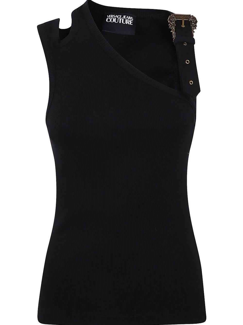 Baroque buckle tank top Highlights - Black - Asymmetric neck - Sleeveless - Cut-out detailing Imported Composition Cotton 100%